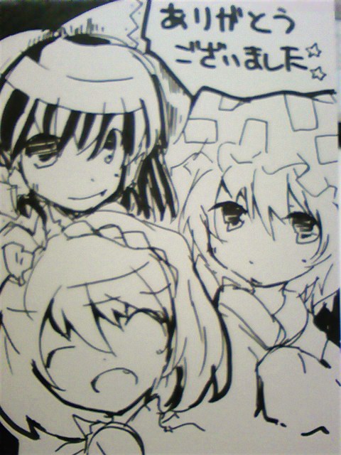 神奈子と紫は下にコピック滲みてたらどうしようと渡してから心配で涙目になってみたりしつつ(大丈夫だったかな?)なんとか生き延びることができました。